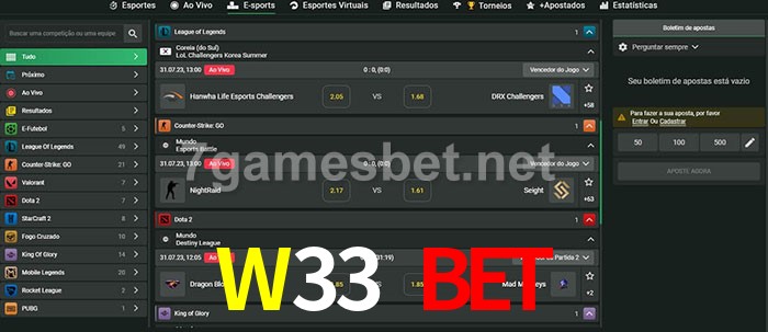 O W33 Bet oferece uma grande seleção de opções de apostas em e-sports com probabilidades competitivas